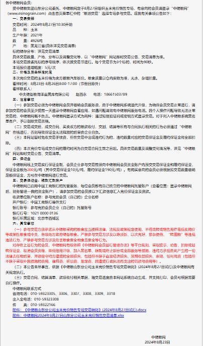 2024年8月27日中儲糧山東分公司玉米競價銷售專場公告