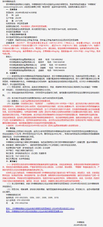 2024年8月26日中儲糧湖南分公司玉米競價采購專場公告