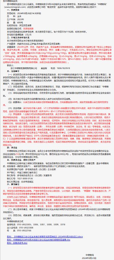 2024年8月26日中儲糧浙江分公司玉米競價采購專場公告