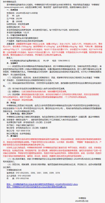 2024年8月26日中儲糧內蒙古分公司玉米競價采購專場公告