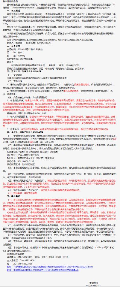 2024年8月27日中儲糧內蒙古分公司玉米購銷雙向競價交易專場公告