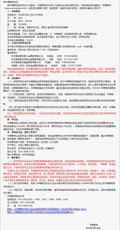 2024年8月27日中儲糧北京分公司玉米競價銷售專場公告