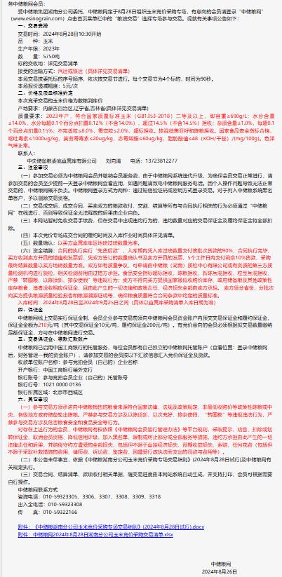 2024年8月28日中儲糧湖南分公司玉米競價采購專場公告