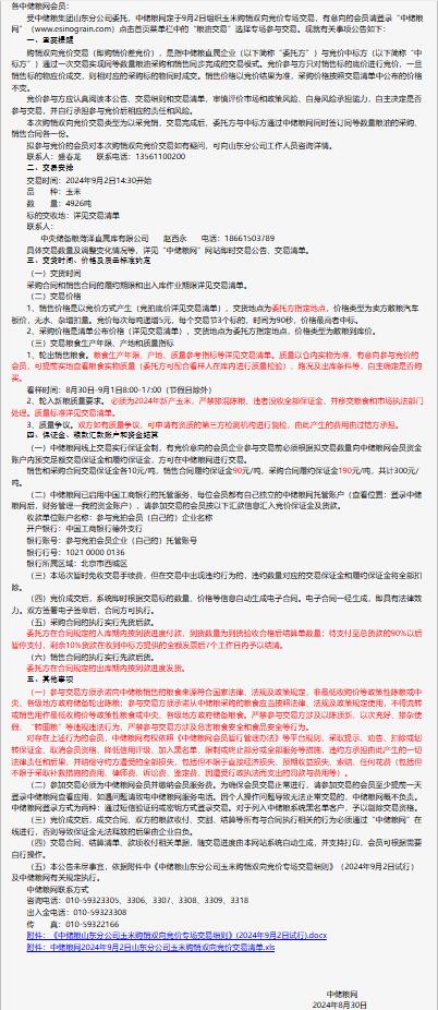2024年9月2日中儲糧山東分公司玉米購銷雙向競價交易專場公告