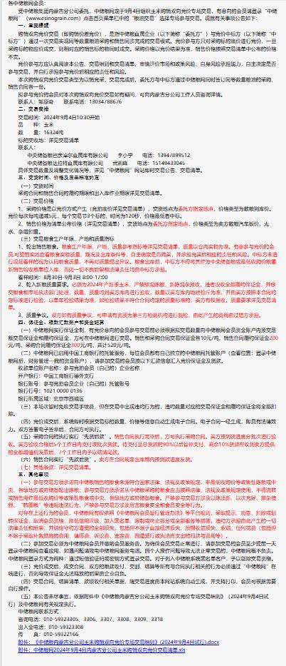 2024年9月4日中儲糧內蒙古分公司玉米購銷雙向競價交易專場公告