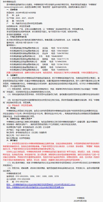 2024年9月2日中儲糧內蒙古分公司玉米競價銷售專場公告