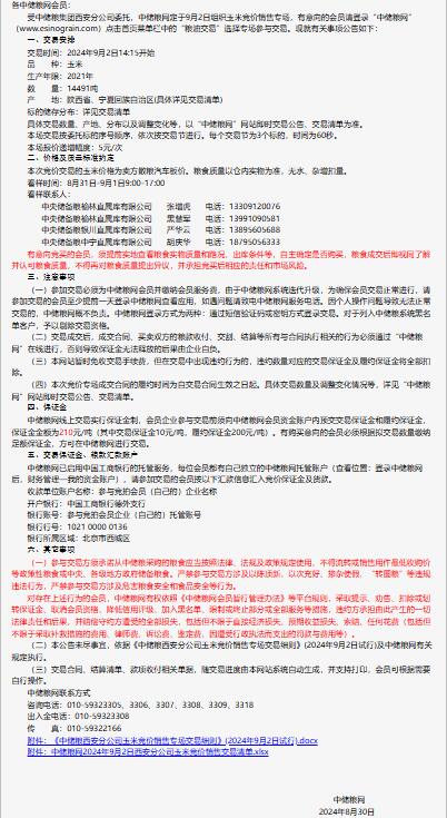 2024年9月2日中儲糧西安分公司玉米競價銷售專場公告