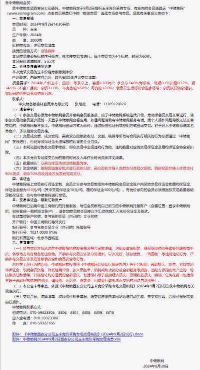2024年9月2日中儲糧西安分公司玉米競價采購專場公告
