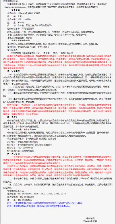 2024年9月3日中儲糧上海分公司玉米競價銷售專場公告
