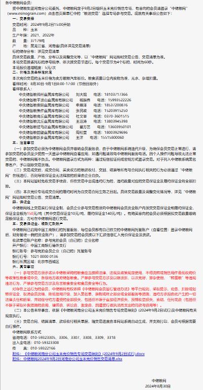 2024年9月2日中儲糧河南分公司玉米競價銷售專場公告