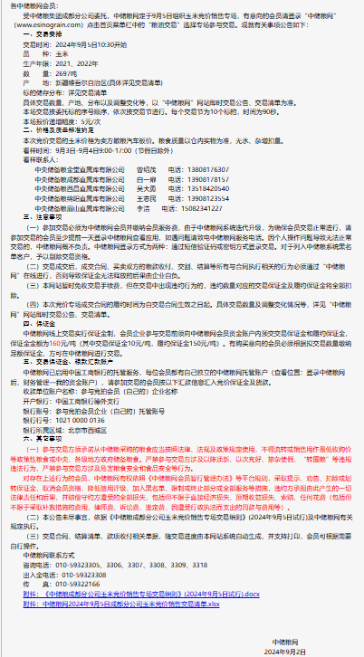 2024年9月5日中儲糧成都分公司玉米競價銷售專場公告