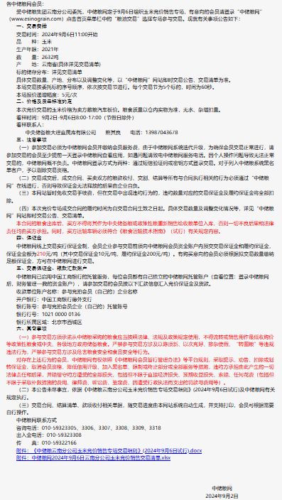 2024年9月6日中儲糧云南分公司玉米競價銷售專場公告