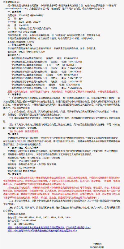 2024年9月5日中儲糧內蒙古分公司玉米競價銷售專場公告