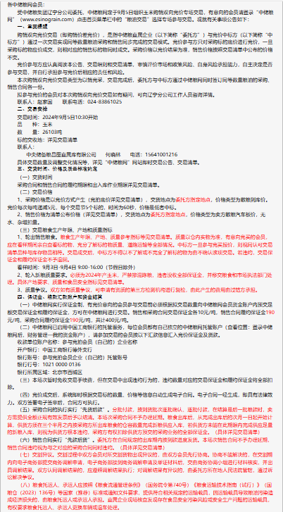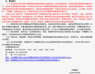 2024年9月5日中儲糧遼寧分公司玉米購銷雙向競價交易專場公告