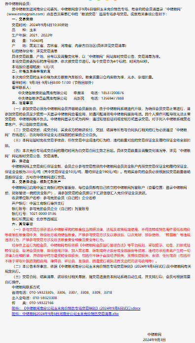 2024年9月6日中儲糧河南分公司玉米競價銷售專場公告
