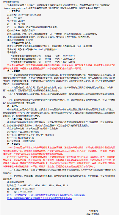 2024年9月6日中儲糧西安分公司玉米競價銷售專場公告