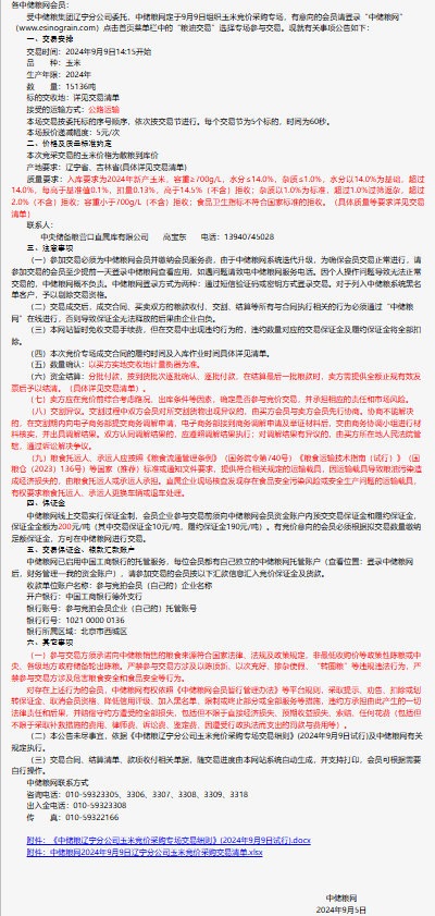 2024年9月9日中儲糧遼寧分公司玉米競價采購專場公告