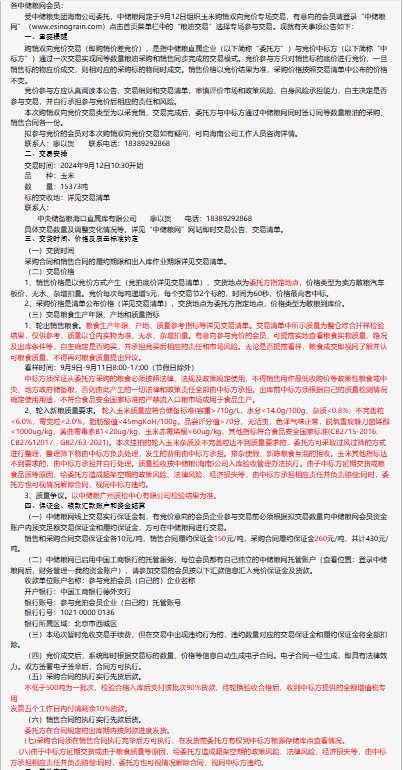 2024年9月12日中儲糧海南分公司玉米購銷雙向競價交易專場公告