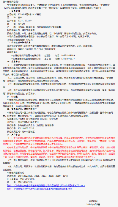 2024年9月9日中儲糧山東分公司玉米競價銷售專場公告