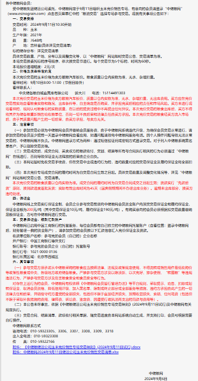2024年9月11日中儲糧儲運公司玉米競價銷售專場公告