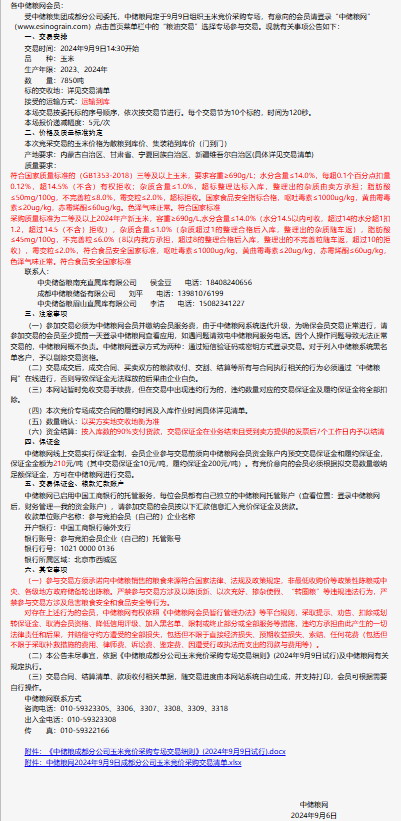 2024年9月9日中儲糧成都分公司玉米競價采購專場公告