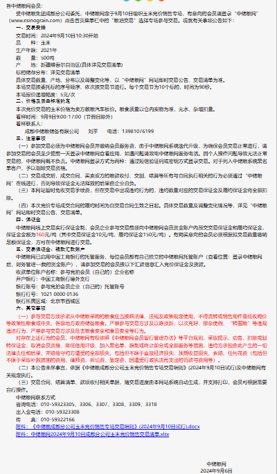 2024年9月10日中儲糧成都分公司玉米競價銷售專場公告