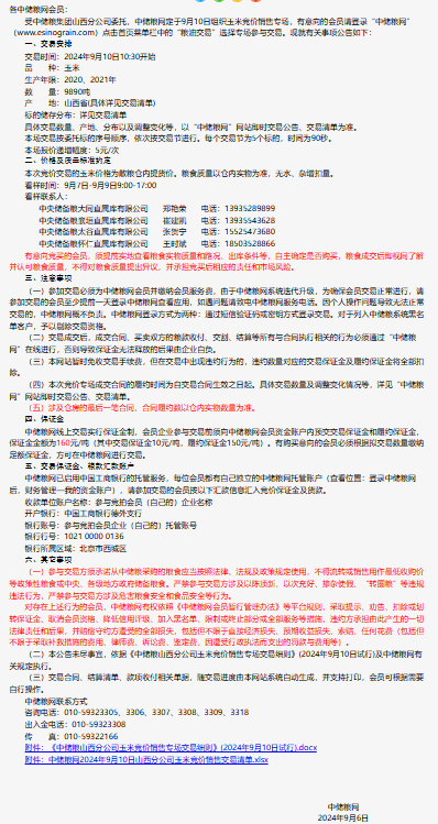 2024年9月10日中儲糧山西分公司玉米競價銷售專場公告