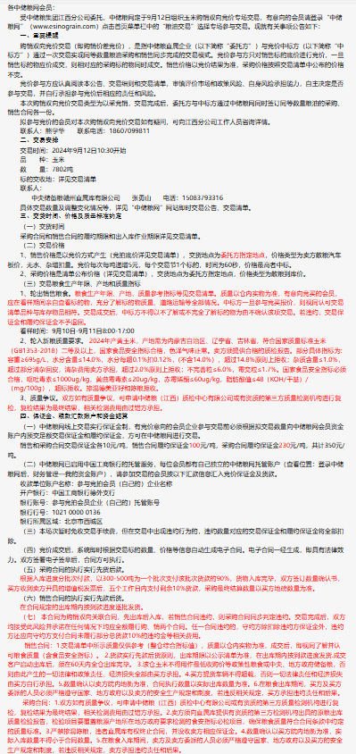 2024年9月12日中儲糧江西分公司玉米購銷雙向競價交易專場公告