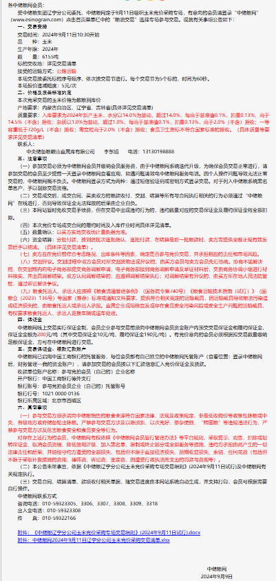 2024年9月11日中儲糧遼寧分公司玉米競價采購專場公告