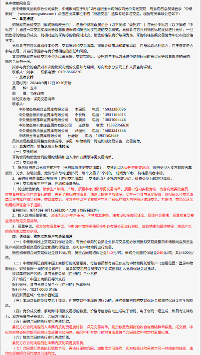 2024年9月12日中儲糧北京分公司玉米購銷雙向競價交易專場公告