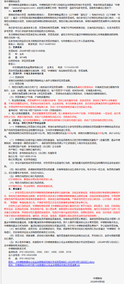 2024年9月12日中儲糧安徽分公司玉米購銷雙向競價交易專場公告