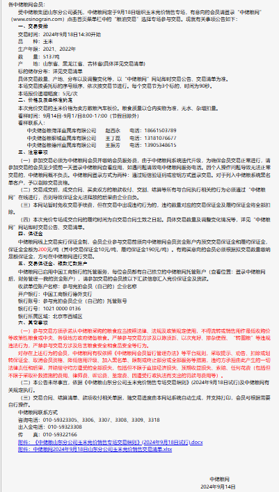 2024年9月18日中儲糧山東分公司玉米競價銷售專場公告