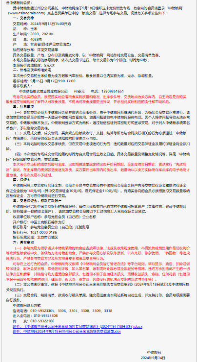 2024年9月18日中儲糧蘭州分公司玉米競價銷售專場公告
