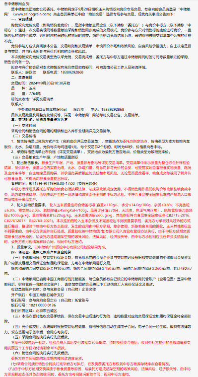 2024年9月20日中儲糧海南分公司玉米購銷雙向競價交易專場公告