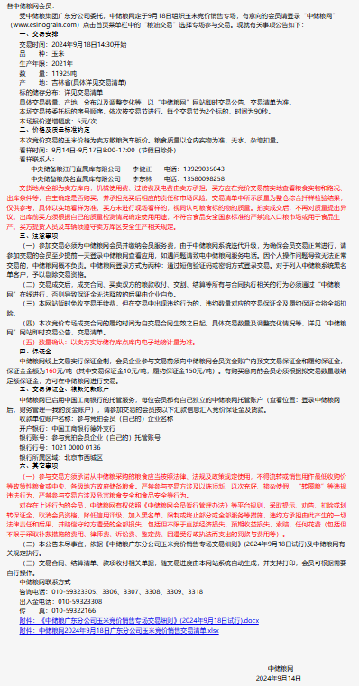 2024年9月18日中儲糧廣東分公司玉米競價銷售專場公告