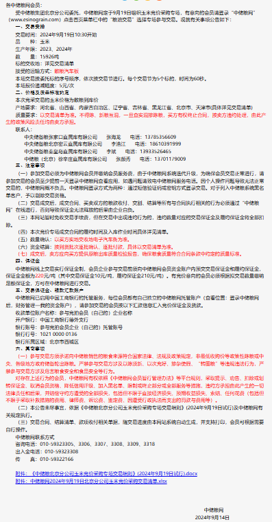 2024年9月19日中儲糧北京分公司玉米競價采購專場公告