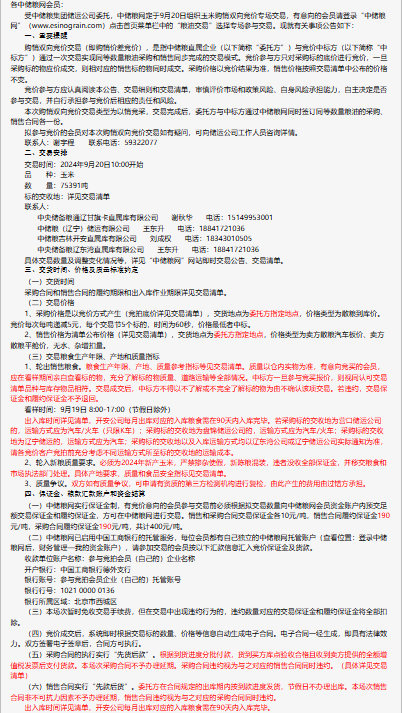 2024年9月20日中儲糧儲運公司玉米購銷雙向競價交易專場公告