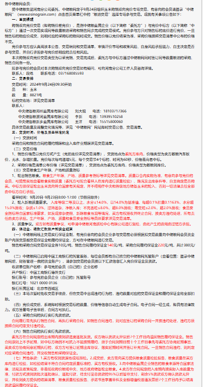 2024年9月24日中儲糧河南分公司玉米購銷雙向競價交易專場公告