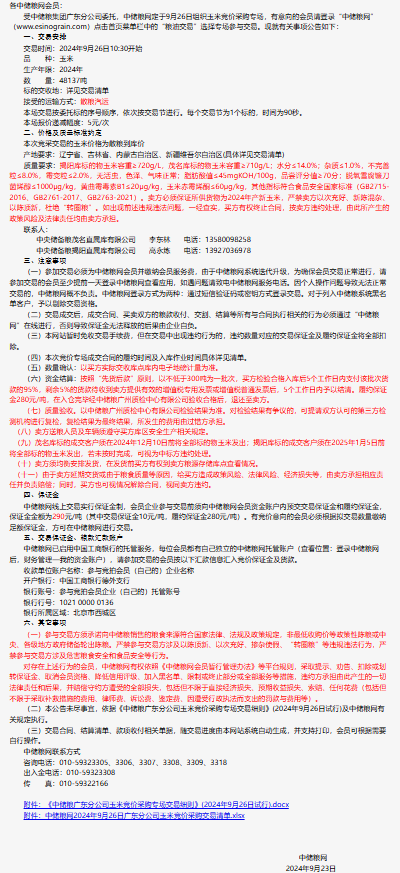 2024年9月26日中儲糧廣東分公司玉米競價采購專場公告