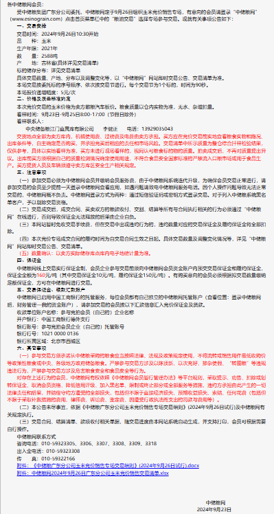 2024年9月26日中儲糧廣東分公司玉米競價銷售專場公告