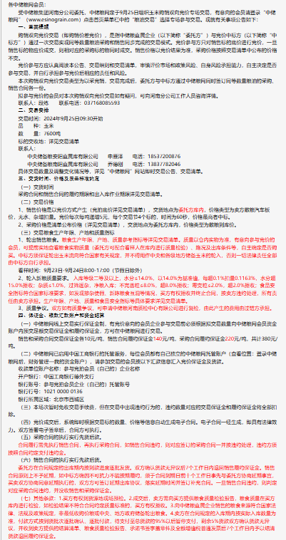 2024年9月25日中儲糧河南分公司玉米購銷雙向競價交易專場公告