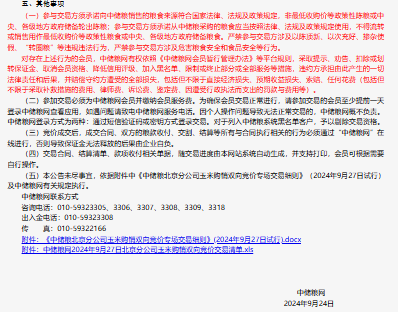 2024年9月27日中儲糧北京分公司玉米購銷雙向競價交易專場公告