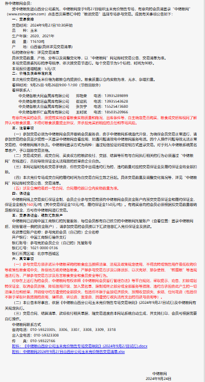 2024年9月27日中儲糧山西分公司玉米競價銷售專場公告