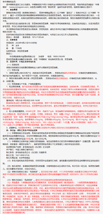 2024年9月27日中儲糧浙江分公司玉米購銷雙向競價交易專場公告