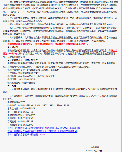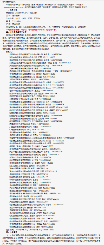 2024年9月27日中儲糧進口玉米(轉基因)競價銷售專場公告