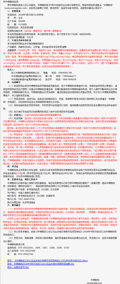 2024年9月30日中儲糧浙江分公司玉米競價采購專場公告