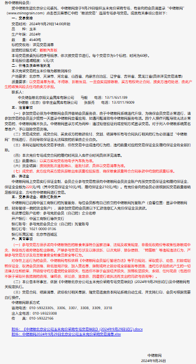 2024年9月29日中儲糧北京分公司玉米競價采購專場公告