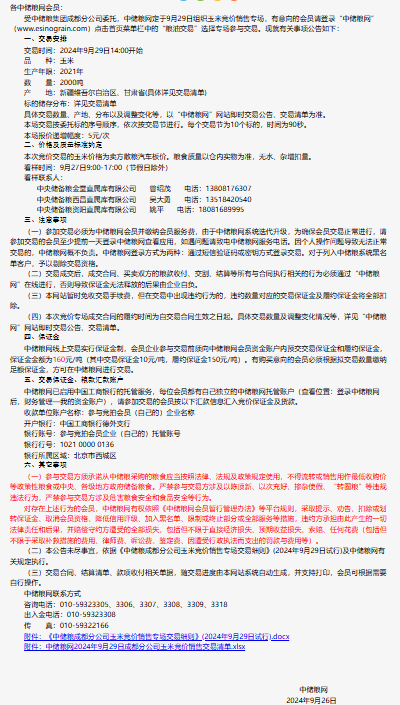 2024年9月29日中儲糧成都分公司玉米競價銷售專場公告
