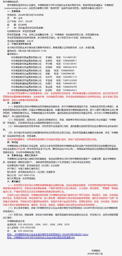 2024年9月30日中儲糧吉林分公司玉米競價銷售專場公告