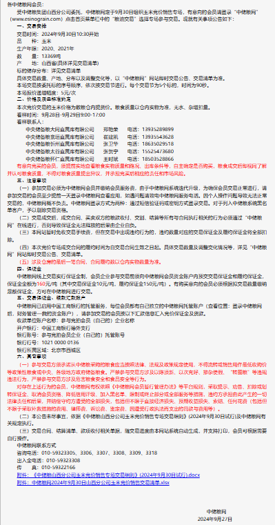 2024年9月30日中儲糧山西分公司玉米競價銷售專場公告